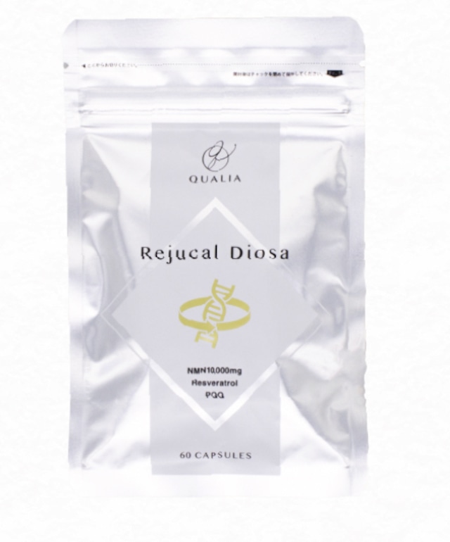 Rejucal Diosa NMNサプリ いつまでも、若々しく。 人類の未来を照らす物質として、いま世界中で期待されている NMN (ニコチンアミドモノヌクレオチド)は、いままでの健康科学の世界が変わる未来へのサプリメントです。 効果(期待される働き) ・細胞のエネルギー産生をサポート(ミトコンドリア活性) ・老化に伴うNAD⁺の減少を補い、若々しさを維持 ・美肌・エイジングケア(ハリやツヤのサポート) ・疲労回復・活力アップ ・睡眠の質をサポート ・集中力・認知機能の維持 ・抗酸化作用で細胞ダメージを軽減 ・薄毛予防 ・生理痛、PMSの軽減 内容量 20.04g【334mg(内容物275mg)X60粒】 配合成分 β-ニコチンアミドモノヌクレオチド(国内製造)、ピロロキノリンキノンニナトリウム塩、レスベラトロール、エクソソーム含有プラ センタ・サイタイ・羊膜エキ末/HPMC、結晶セルロース、ステアリン酸カルシウム、ジェランガム、ビタミンB2、ビタミンB6、 ヘマトコッカス藻色素(大豆由 来)、カラメル色素、ビタミン C、ビタミンA、ビタミンB12