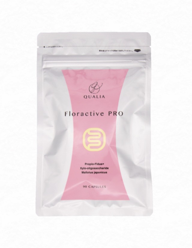 Floractive PRO 便秘改善、腸内環境の整え 内容量 36.45g【405mg(内容物330mg)X90粒】 配合成分 アカメガシワエキス(国内製造)、キシロオリゴ糖、デキストリン、ショ糖、プロピオン酸菌/HPMC、トレハロース、加工でん粉、ステアリン酸Ca、微粒二酸化ケイ素、ゲル化剤(ジェランガム)、カラメル色素、ビタミンC