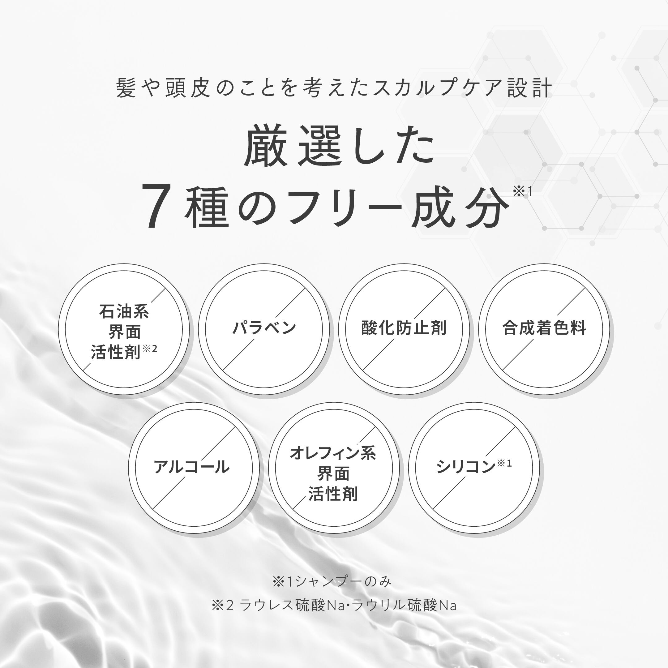 スキンケアメーカーならではの厳選した成分を元につくったシャンプー、トリートメント。