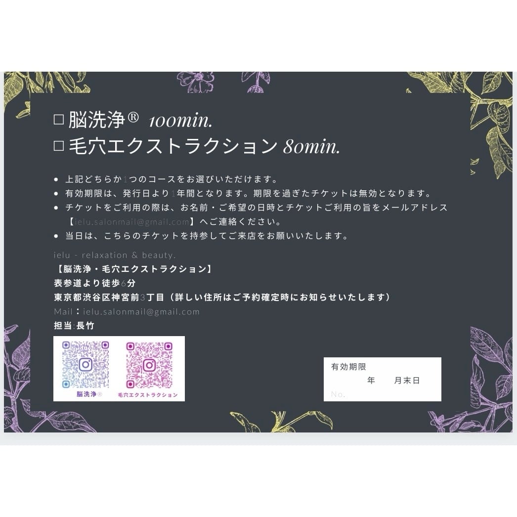 【脳洗浄®︎】または【毛穴エクストラクション】の選べるギフトチケットです!